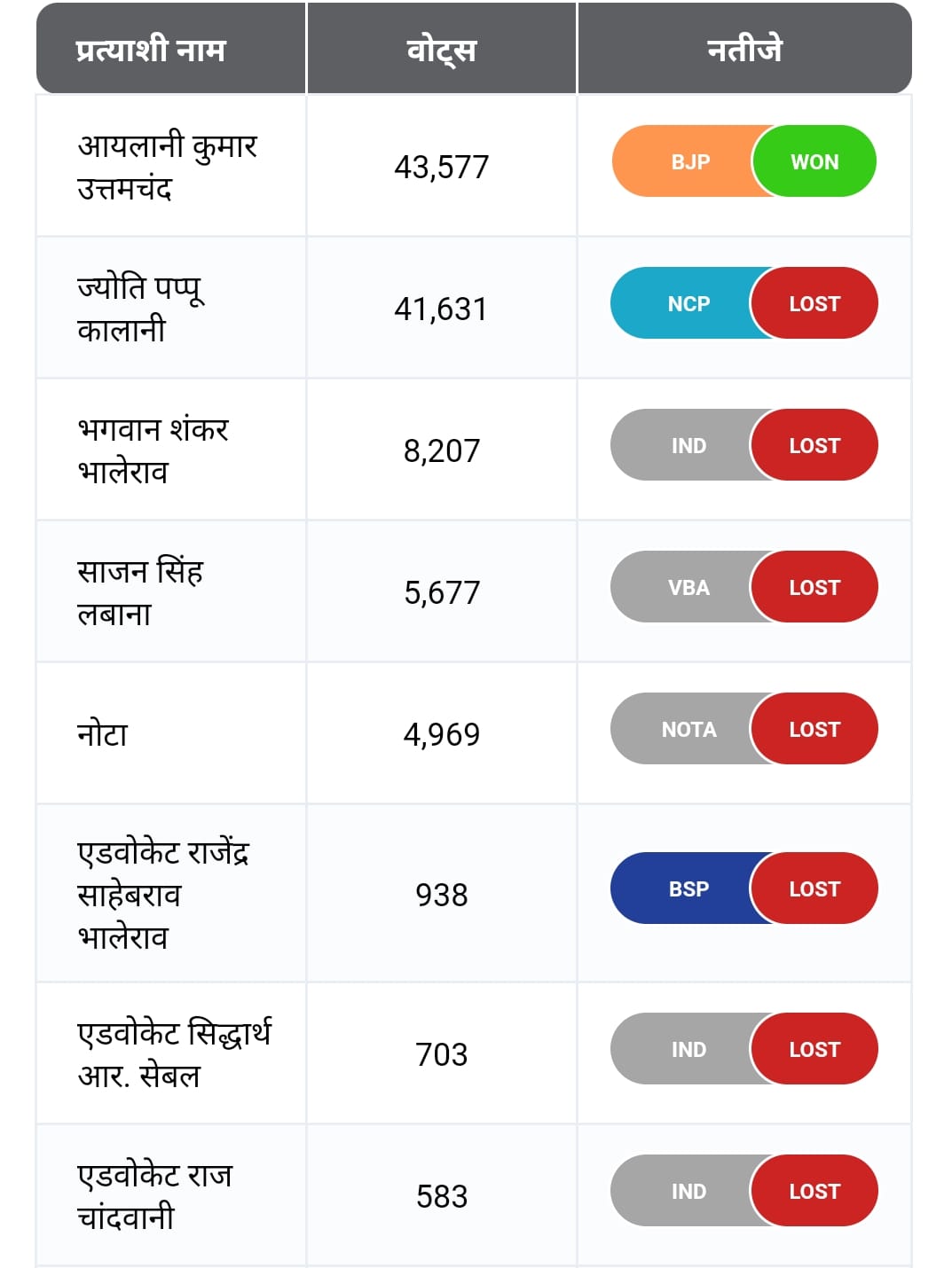 2019 में उल्हासनगर विधानसभा चुनाव में 4969 नोटा को वोट हुआ है